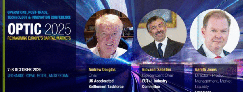 Andrew Douglas, Chair of the UK Accelerated Settlement Taskforce and Giovanni Sabatini, Chair of the EU T+1 Taskforce will be speaking on a panel at AFME Optic 2025 titled ​​’T+1: Where are we now, and what’s next?’ chaired by Gareth Jones, CEO Global Collateral at Euroclear.